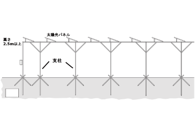 | 設備の条件 @申請に係る転用期間が3年以内の期間であり、下部の農地に於る営農の適切な継続を前提とする営農型発電設備の支柱を立てることを利用の目的とする事。 A簡易な構造で容易に撤去できる支柱として、申請に係る面積が必要最小限で適正と認められる事。 B下部の農地における営農の適切な継続が確実で、パネルの角度、間隔等からみて農作物の生育に適した日照量を 保つための設計となっており、支柱の高さ、間隔等からみて農作業に必要な機械等を効率的に利用して営農するための 空間が確保されていると認められること。 また、位置等からみて、営農型発電設備の周りの農地の効率的な利用、農業用排水施設の機能等に 支障を及ぼすおそれがないと認められること。 C支柱を含め営農型発電設備を撤去するのに必要な資力及び信用があると認められること。 転用期間の満了する場合に改めて上記の確認を行い、問題がなければ再度転用の許可となります。 また、次に掲げる場合については、営農の適切な継続が確保されていないと判断されます。 └1.営農が行われない場合。 └2.下部の農地における単収が、同じ年の地域の平均的な単収と比較しておおむね2割以上減少している場合。 └3.下部の農地において生産された農作物の品質に著しい劣化が生じていると認められる場合。 └4.農作業に必要な機械等を効率的に利用することが困難であると認められる場合。 そして、生産された農産物の収量等を毎年報告する必要があります。 適切に営農を続けていけば農地での太陽光事業を継続していけることになり、 また、20年間の固定価格買取制度と併せて、発電した電気の全量売電が継続できることになりました。 |